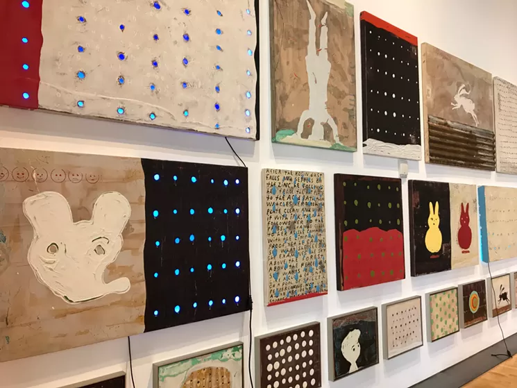 The show is called "Signs and Cyphers," and yous tin exist one of the first people to see it when Gebert Contemporary Art Gallery, 7160 Principal Street in Scottsdale, presents the free opening reception from seven to ix p.m. on Thursday, January 11, during the Scottsdale ArtWalk. It'south a chance to chat with the artist about means his work creates subconscious associations through symbols gleaned from diverse sources. Visit the Gebert Gimmicky Fine art Gallery website. Lynn Trimble